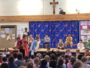 With the Parish Priest masses and collective worship are planned for the Academic year in the previous Pentecost term. St Mary’s school is blessed to have the church located next door and every opportunity is made to attend mass on days of obligation, Solemnities, Feast days and also in the weekday masses. Class masses have also been planned for the 25/26 Academic year. Pupils facilitated by their class teacher have the opportunity to plan masses and enjoy reading and singing at the masses. Every term, planned with the Parish Priests, the pupils welcome, and read at a Parish mass.